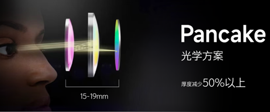 自研的Pancake光学模组,采用了全新树脂材料、3P Pancake折叠光路镜片设计,在轻量化、抗冲击能力、成本、透明度、耐热性、环保美观等方面相较于玻璃材质有显著优势。这不仅使得设备更加轻薄,同时提供了更出色的成像效果。